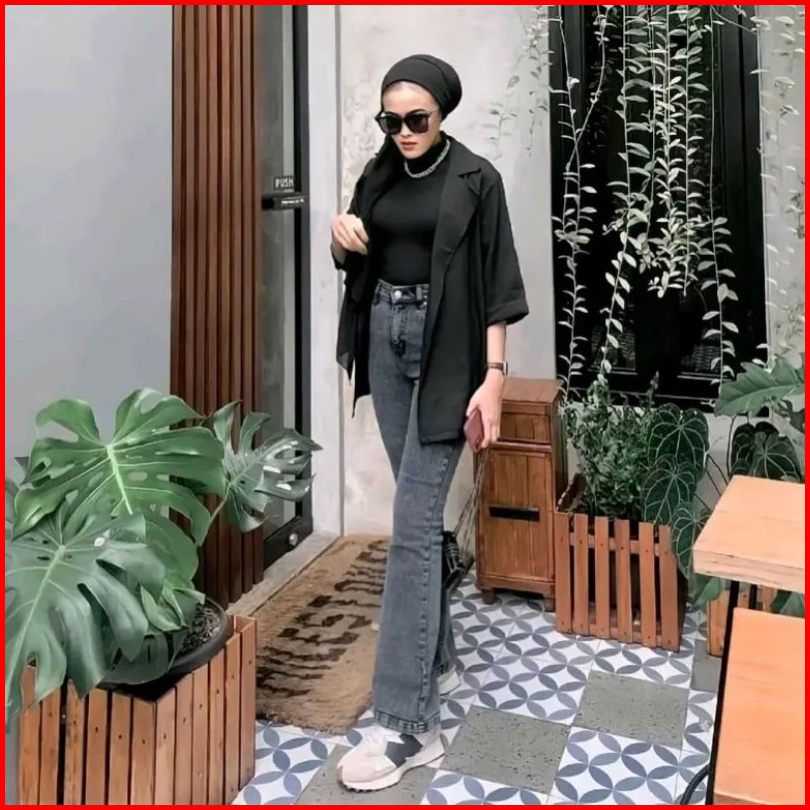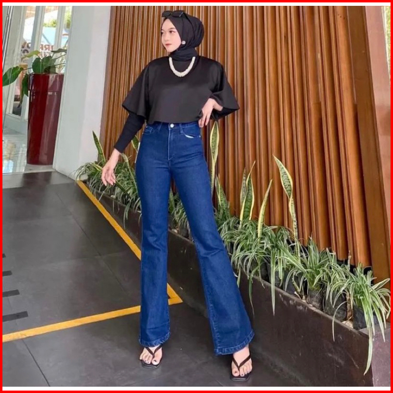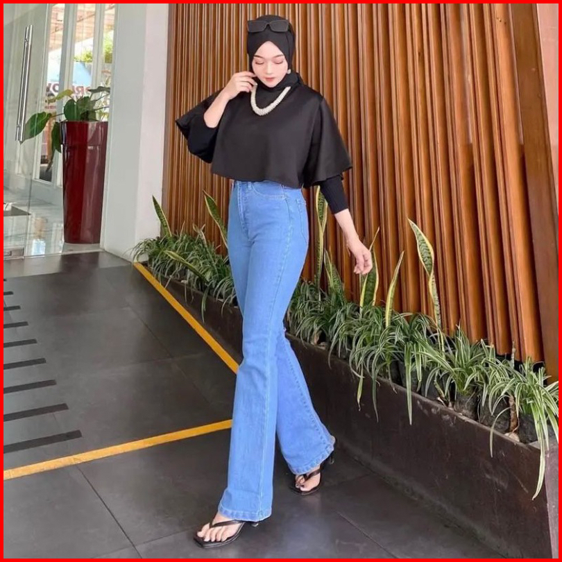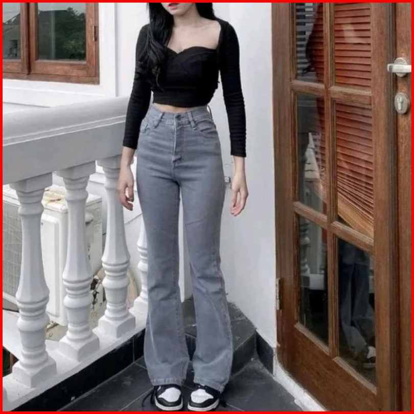 Highwaist Cutbray Jeans Wanita Koreanstyle Jeans Stretch