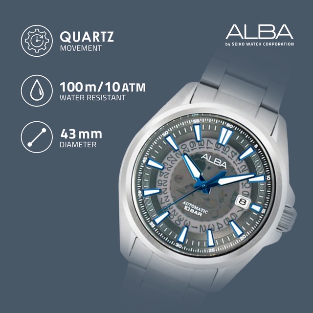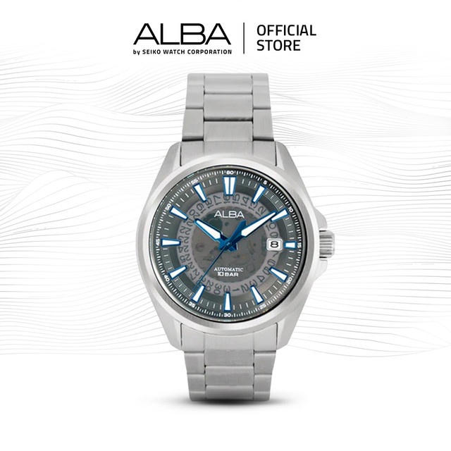 Alba Mechanical Jam Tangan Pria AU4033 / AU4033X1 Automatic Grey Dial Stainless Steel Strap Watch