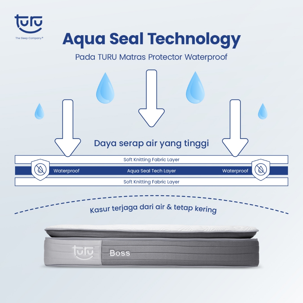 Matras Mattress Protector TURU Non Waterproof Matras Waterproof AQUA SEAL TECHNOLOGY