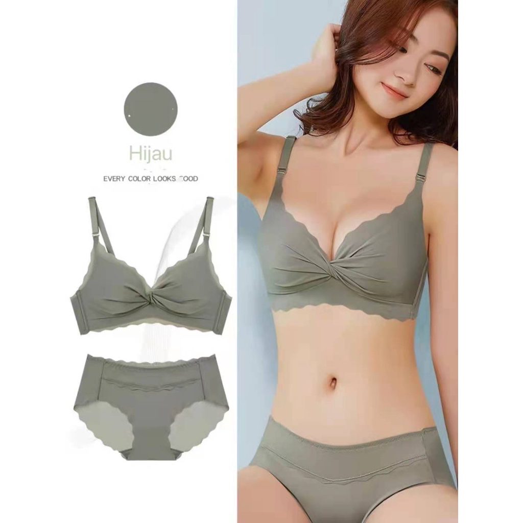 Fairygirl.id Set Bra + Celana Dalam Wanita el Tanpa Kawat Bahan Halus French Triangle Cup