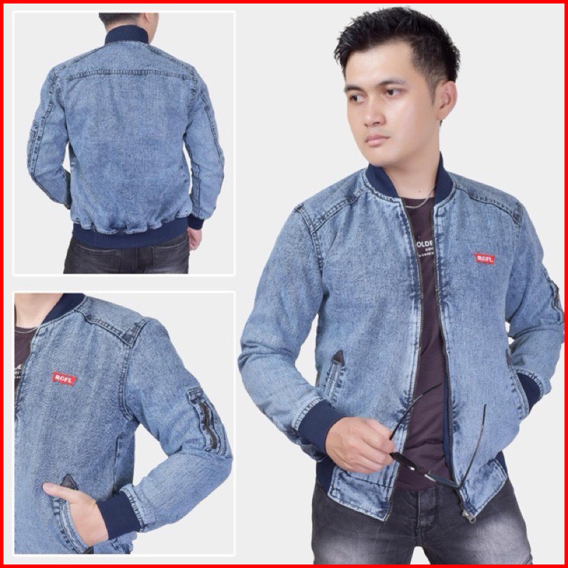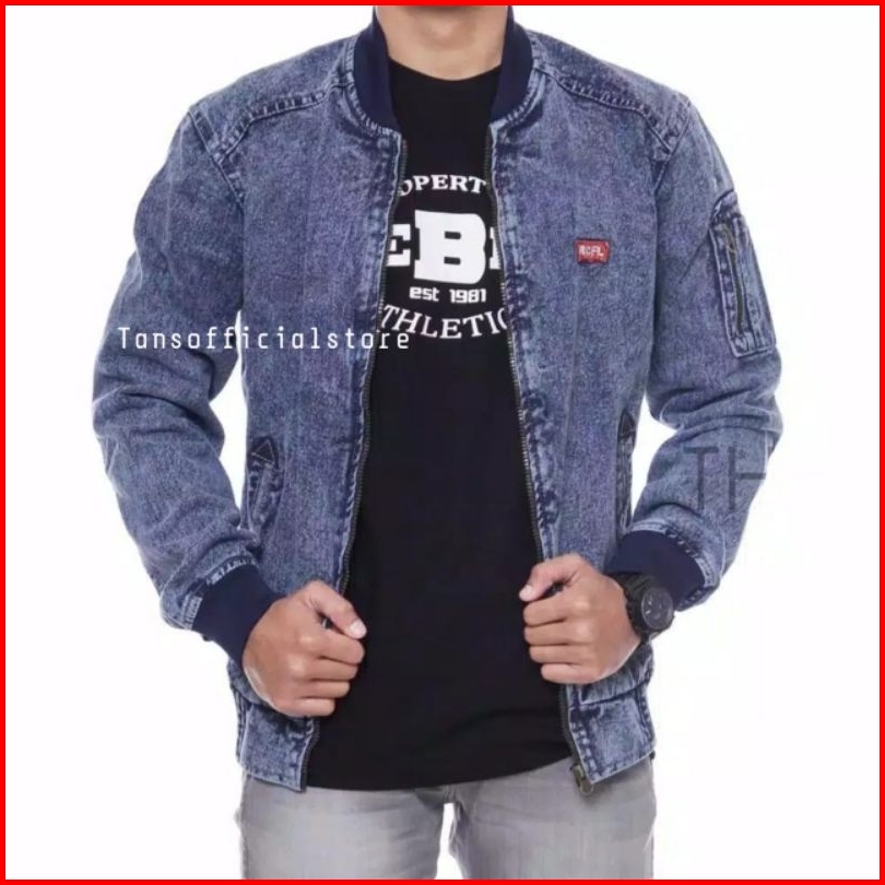 Tans - Jaket Jeans Sleting Pria Cowok Senwash Sandwash Bomber Denim Rocafela Original High Quality