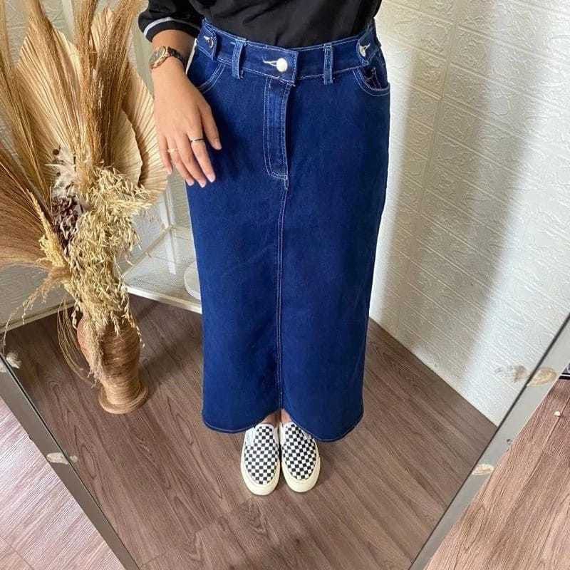 Rok Jeans Panjang ROK JEANS SKRIT THEANA STANDAR JUMBO KOREA STYLE DENIM WANITA KEKINIAN