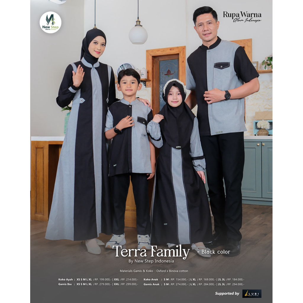 BAJU LEBARAN 2026 LUBI - NEW STEP TERRA FAMILY (Black, Mocha, Sage) Family Set Sarimbit Keluarga 2026 Tera Newstep Murah