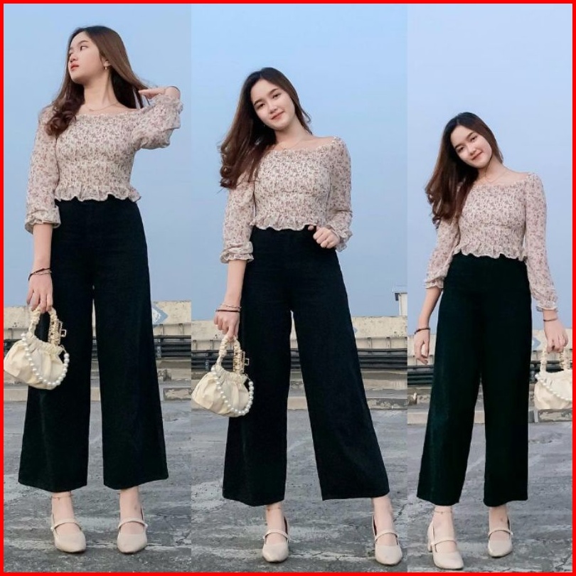 Bf Celana Bawawahan Highwaist Wanita Kulot Hitam Kulot Putih Ji