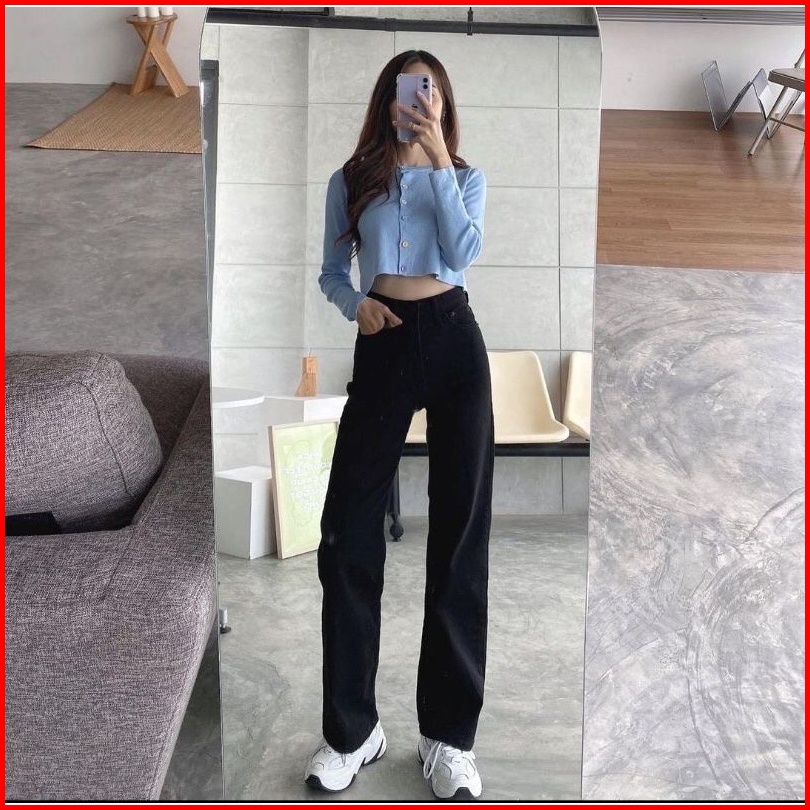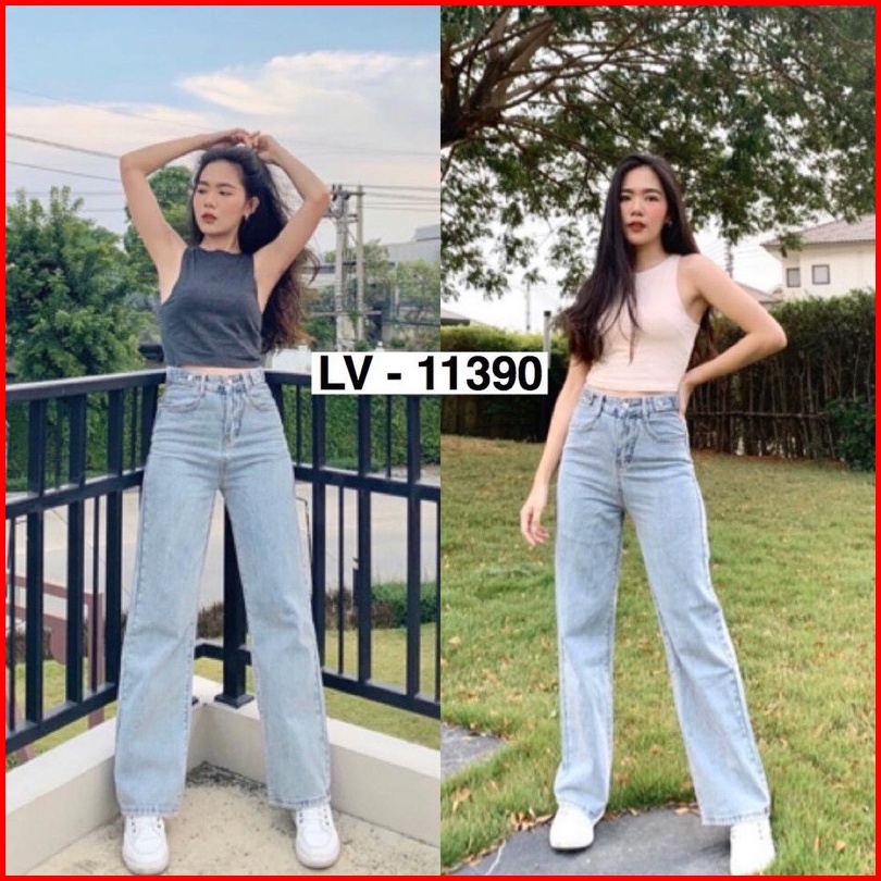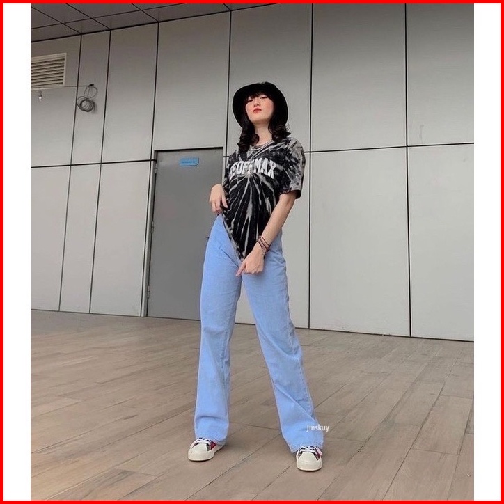 Trivela Highwaist Jeans Kulot Wanita Loose Plainloose