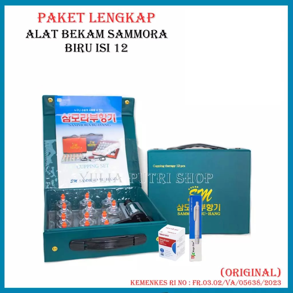 Paket Lengkap Alat Bekam / Kop Angin Sammora Isi 12 Tas Merah dan Biru Premium Korea / Kop SM 12 + Pen MS + Jarum Sinocare Isi 50