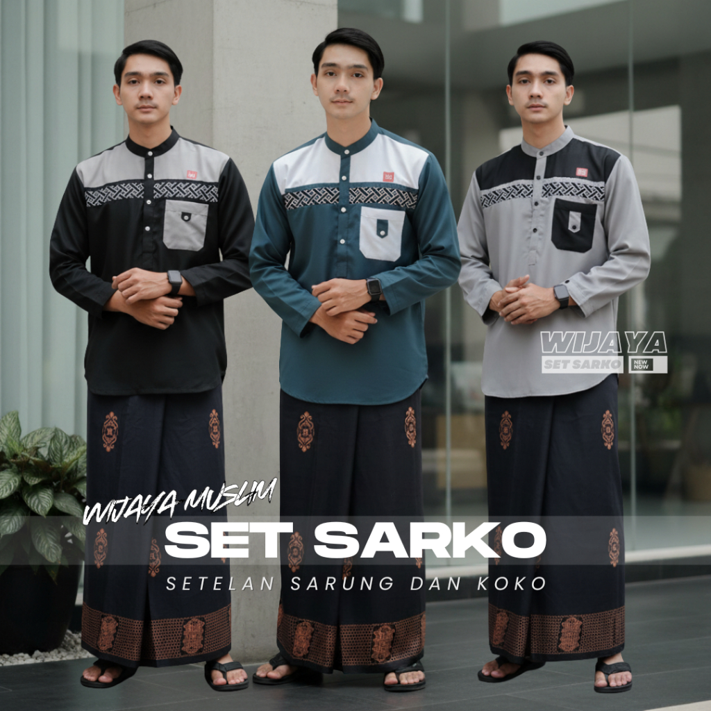 SET SARKO Dewasa Sarung Dan Koko Lengan Panjang Pria Muslim Motif Batik Sarung Motif Sarang Tawon
