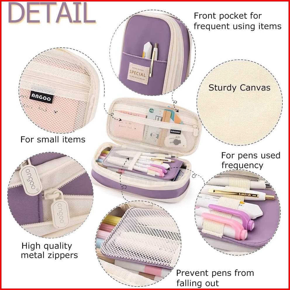 Angoo Kawaii Pencil Cases Large Capacity Pencil Bag Pouch Holder Box For Girls Office Student Stationery Organizer Schoo