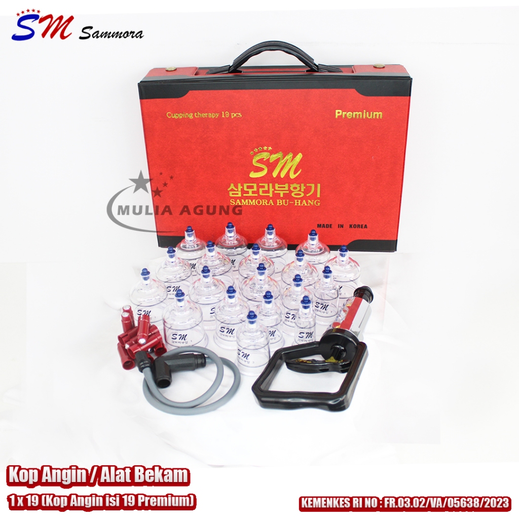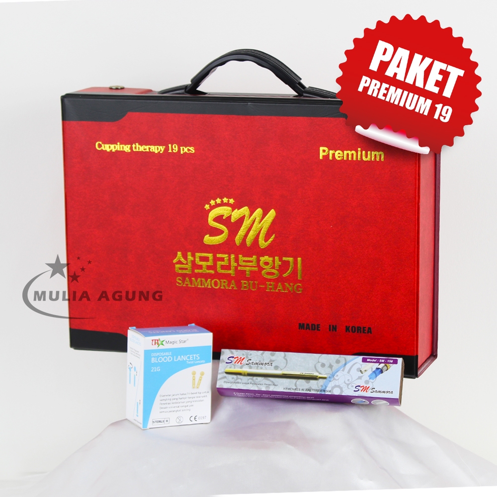 Paket Alat Bekam Sammora Premium 19 Kop + Lancing Device Stainless SM-158 + Blood Lancets 21G MS