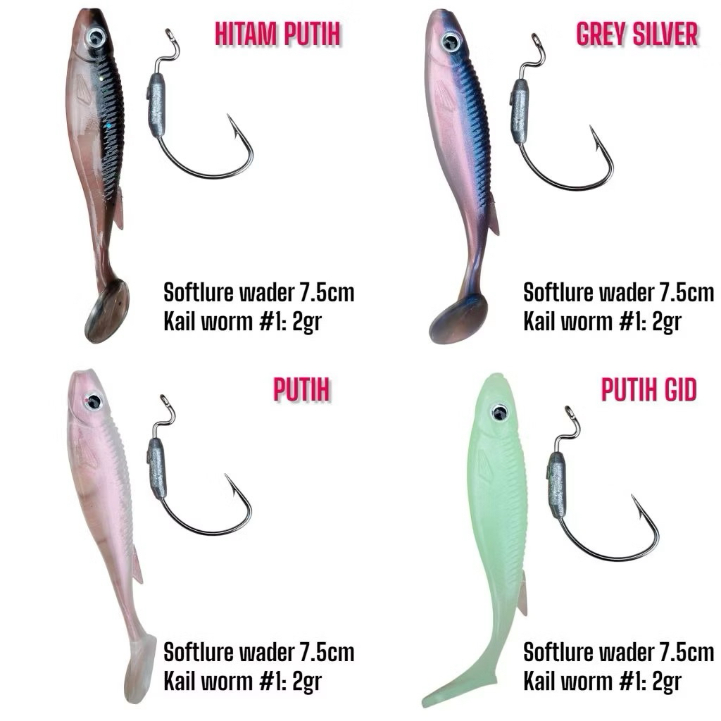 1 Pcs UMPAN PANCING LURE CASTING SOFTLURE WADER 7.5CM BONUS KAIL WORM #1 Murah Gratis Ongkir