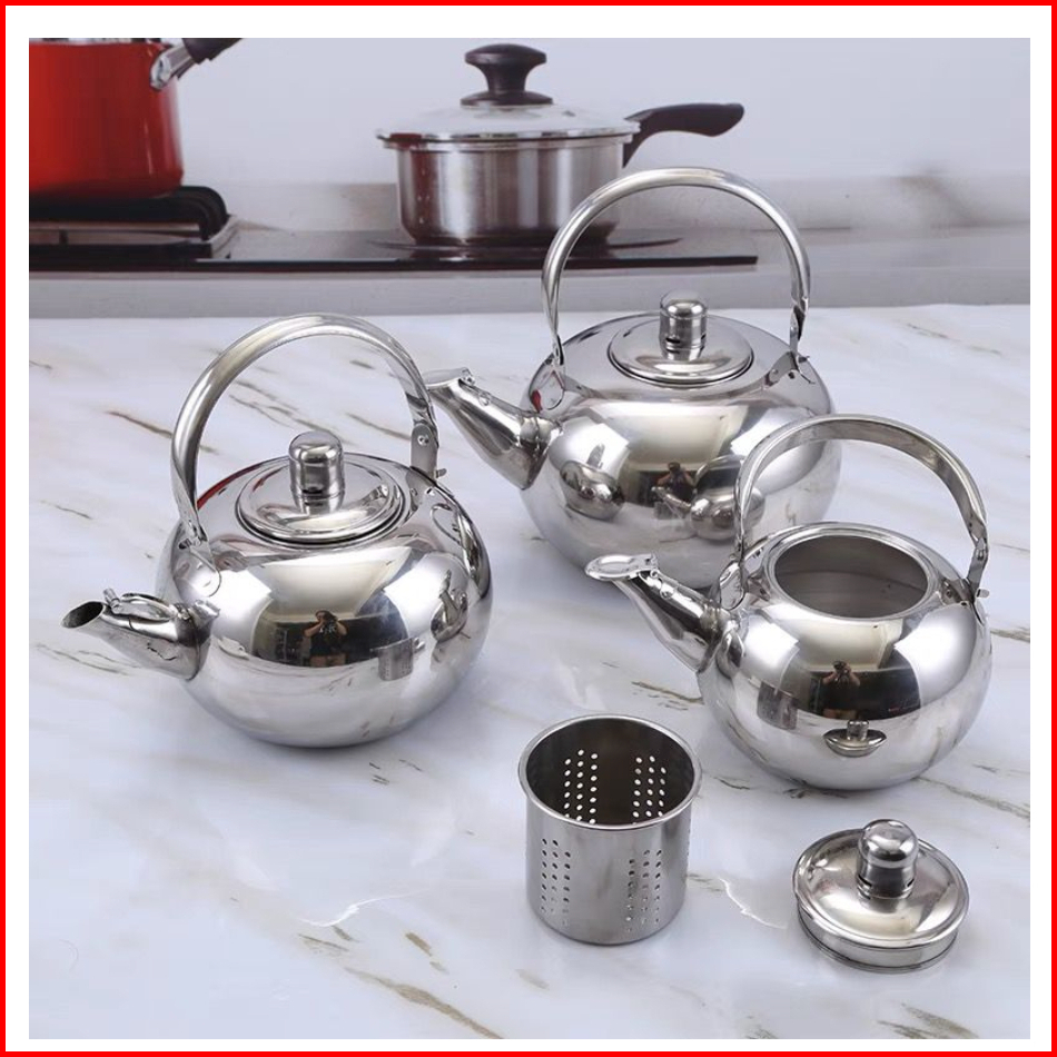 Mm - Teko Air Aladin Stainless Steel - Teko Teapot Bulat Dengan Saringan Teh - Teko Saji Lopi Teh Serbaguna Minimalis