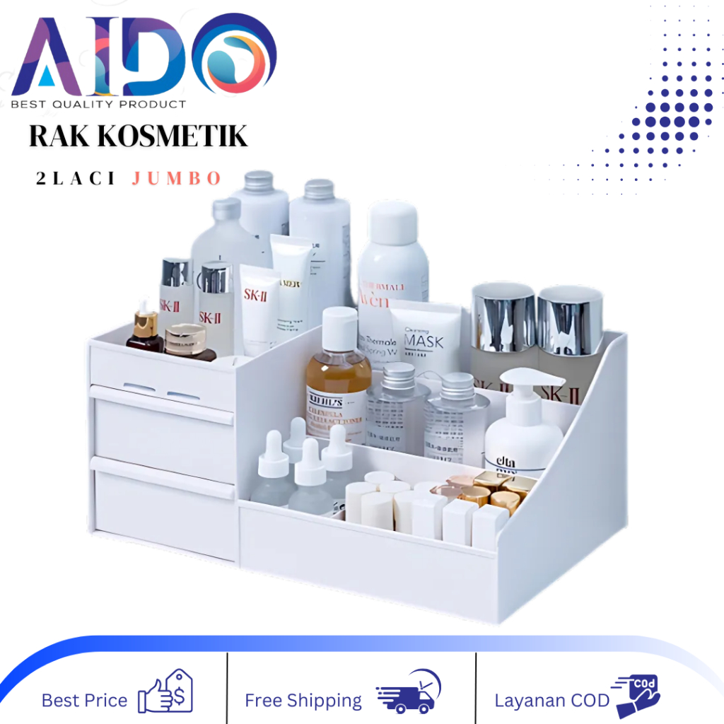 Rak Kosmetik Aesthetic 2 Laci Multifungsi Tempat Penyimpanan Aksesoris Perhiasan Jumbo AIDO Murah Gratis Ongkir