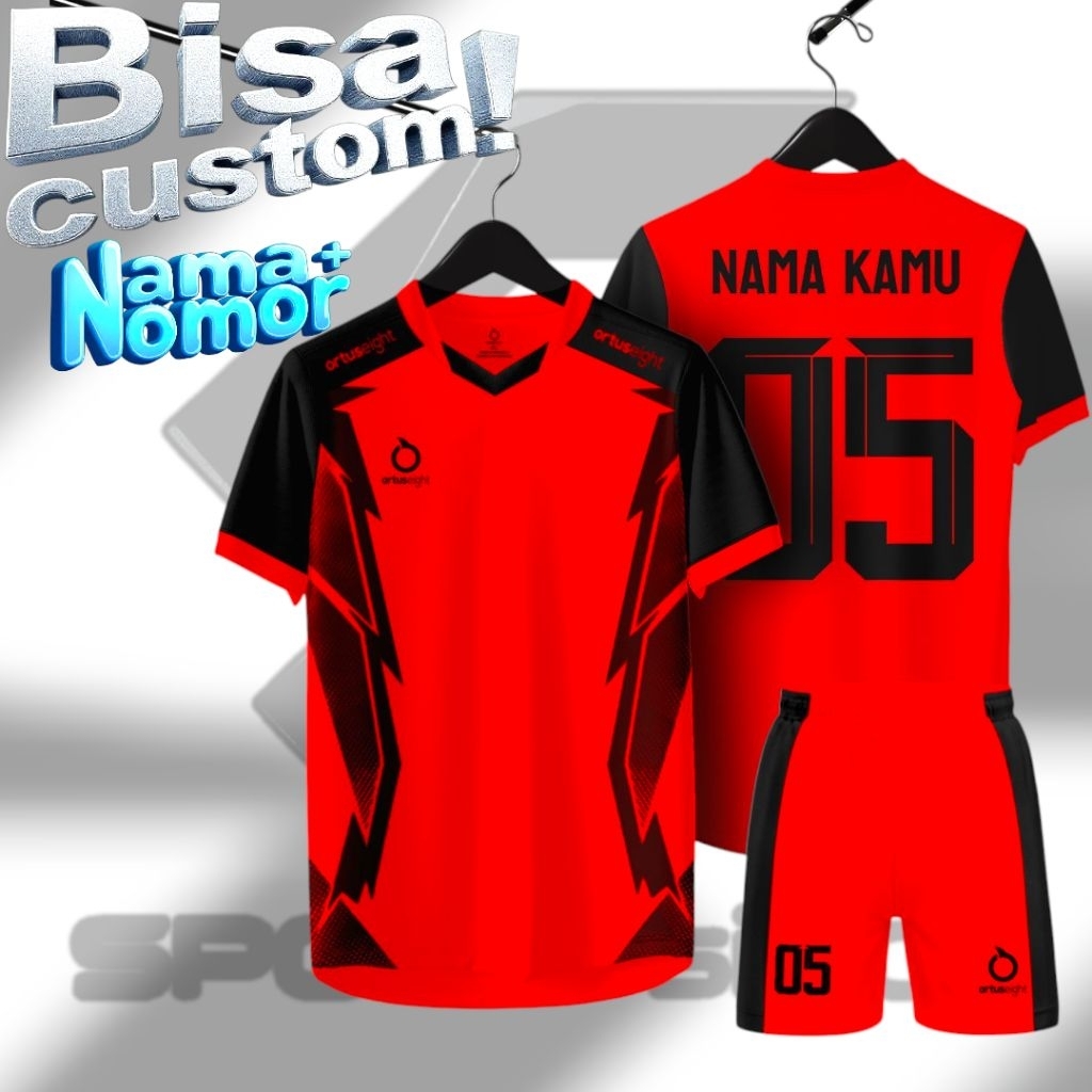 (FREE) CUSTOM NAMA DAN NOMOR PUNGGUNG+SPONSOR+LOGO setelan baju jersey olahraga sepak bola dan futsal voli basket