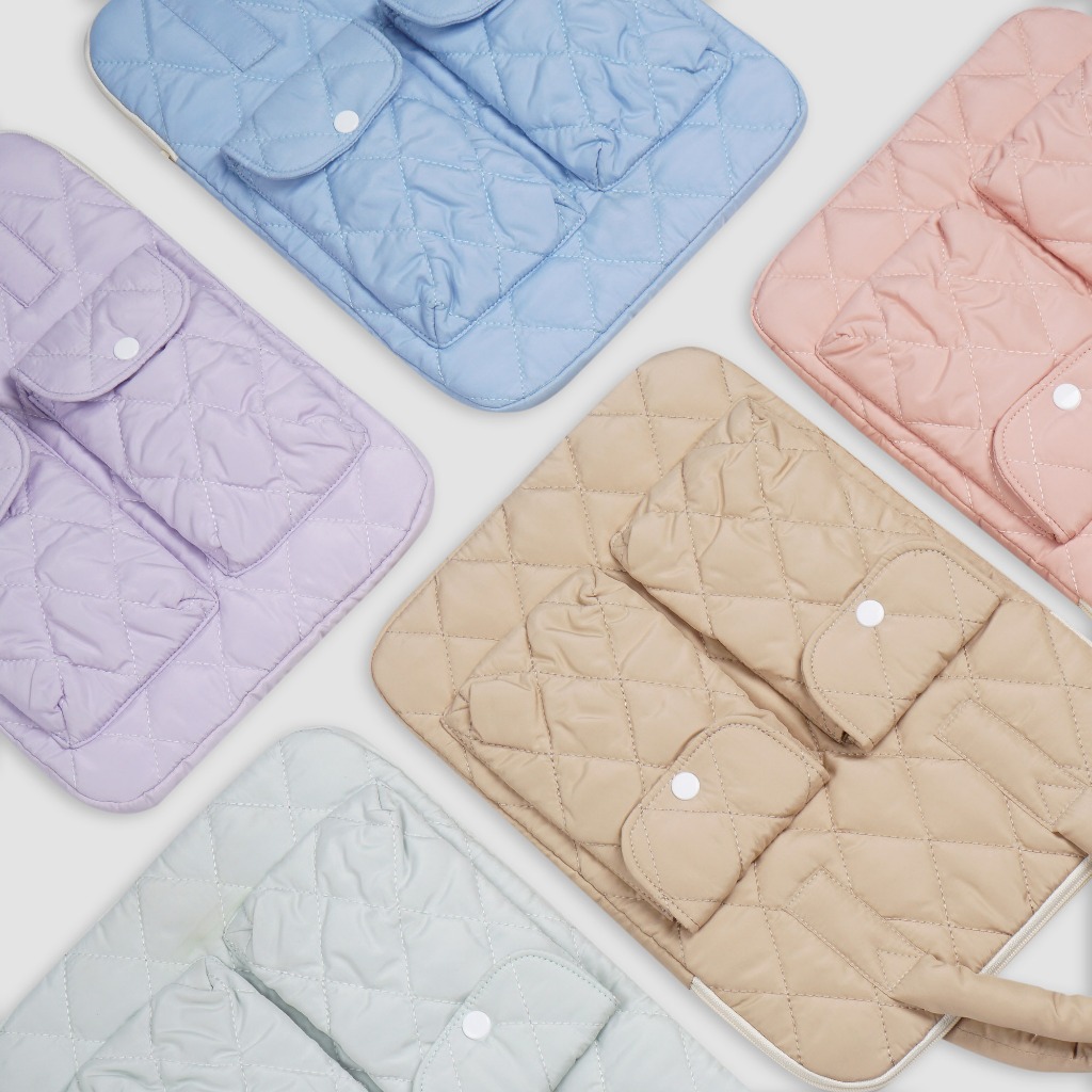 Yumna Laptop Sleeve puffy Quilted Bag With 2 Extra Pocket | Tas Softcase Pelindung Laptop dengan 2 kantong tambahan