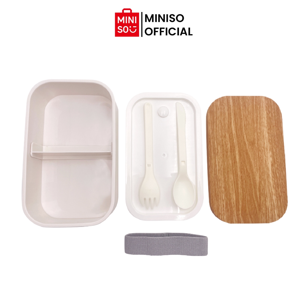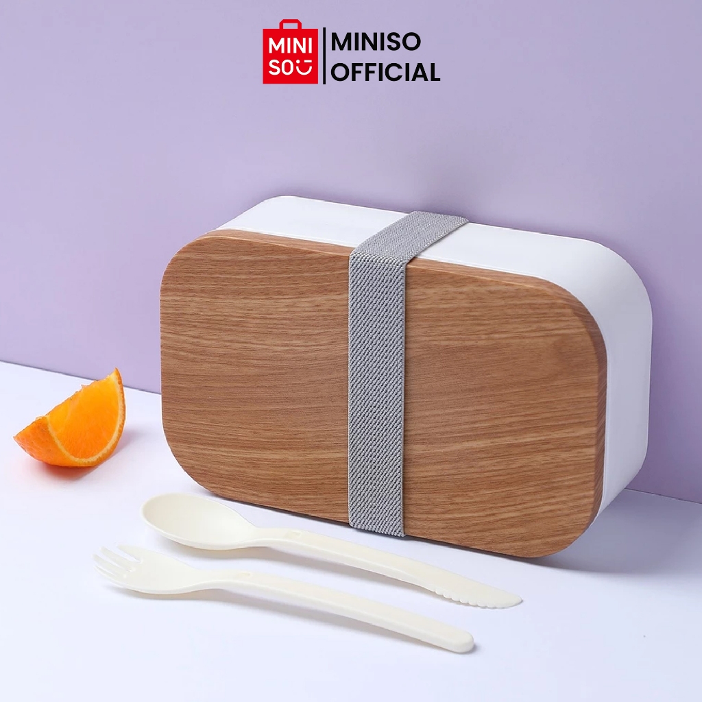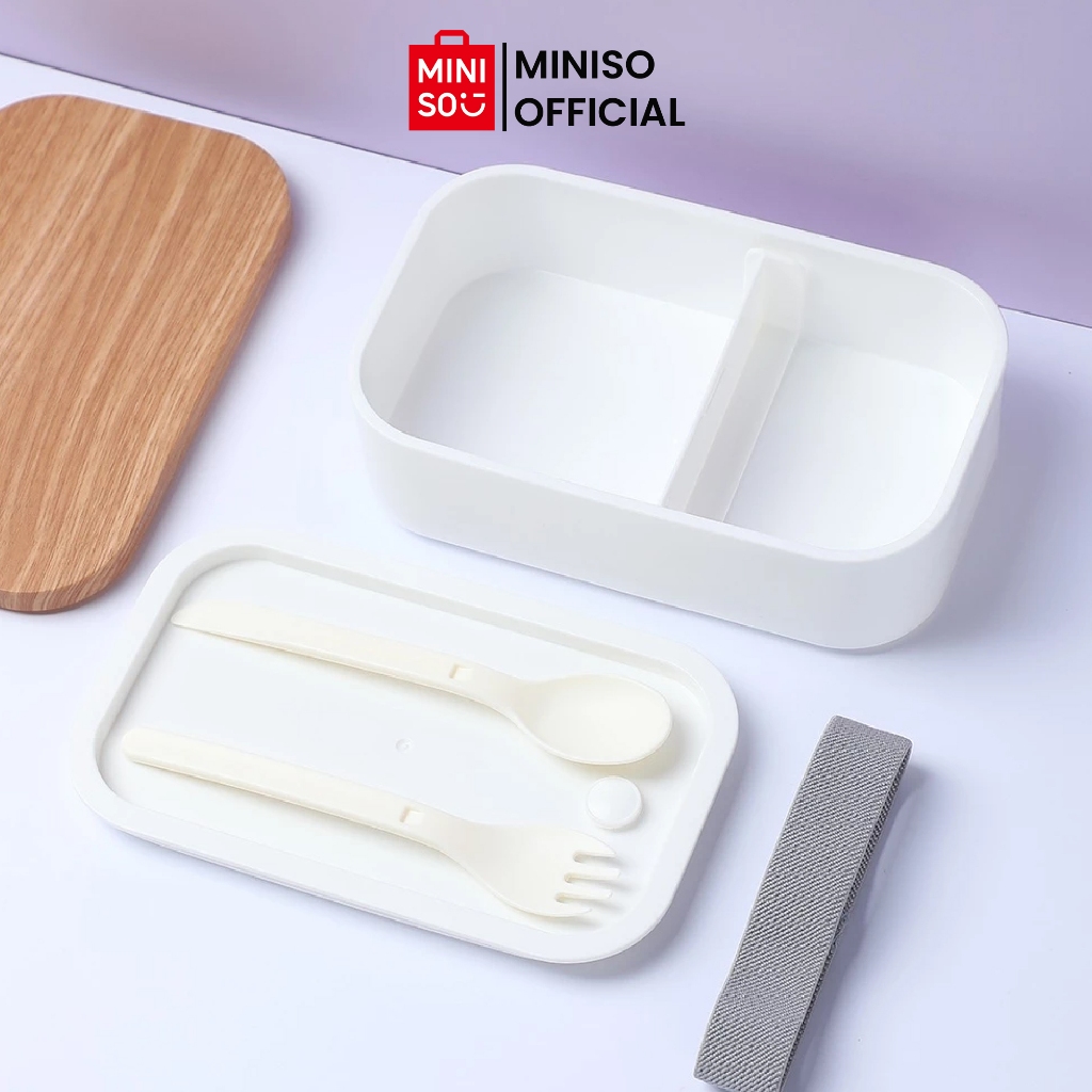 MINISO Kotak Mankanan Bento Sendok Garpu Set Kotak Bekal Makan Lunch Box Tempat Bekal 900ml