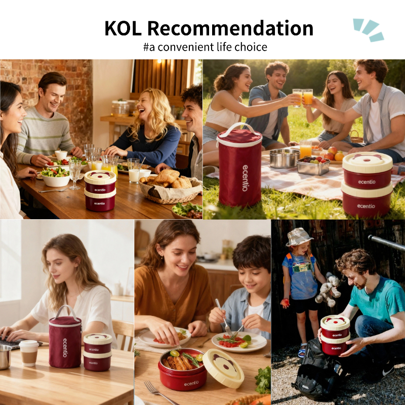 ecentio lunch box tas set 3pcs merah Kotak Makan anti tumpah 304 Stainless Steel tas bekal dan free sendok