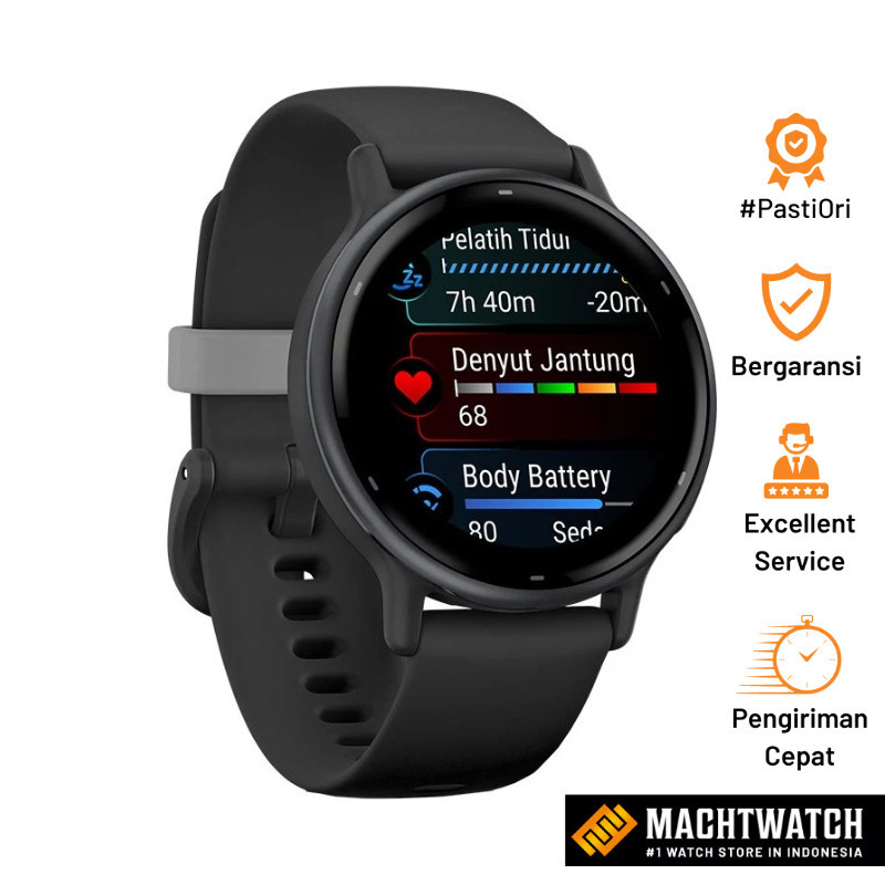 Jam Tangan Unisex Garmin Vivoactive 5 010-02862-5A Smartwatch Slate Alumunium Bezel Black Silicone Band