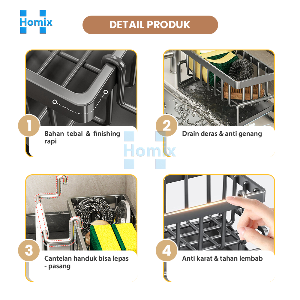 HOMIX Rak Spons Cuci Piring Wastafel Estetik Minimalis ABS Anti Karat Murah Gratis Ongkir