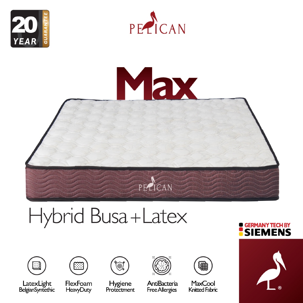 Pelican Kasur Latex Busa Hybrid Max Tebal 18 Cm Garansi 20 Tahun Uk 90 120 160 180 200 [Bisa Custom] Murah Gratis Ongkir