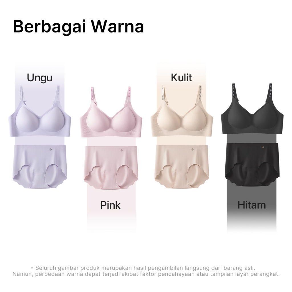 GRENEY-Bra Set Bra Seamless Mulus Menopang Tali bahu huruf mengkilap Cup yang dapat dilepas Mengumpul alami + CD Kelopak