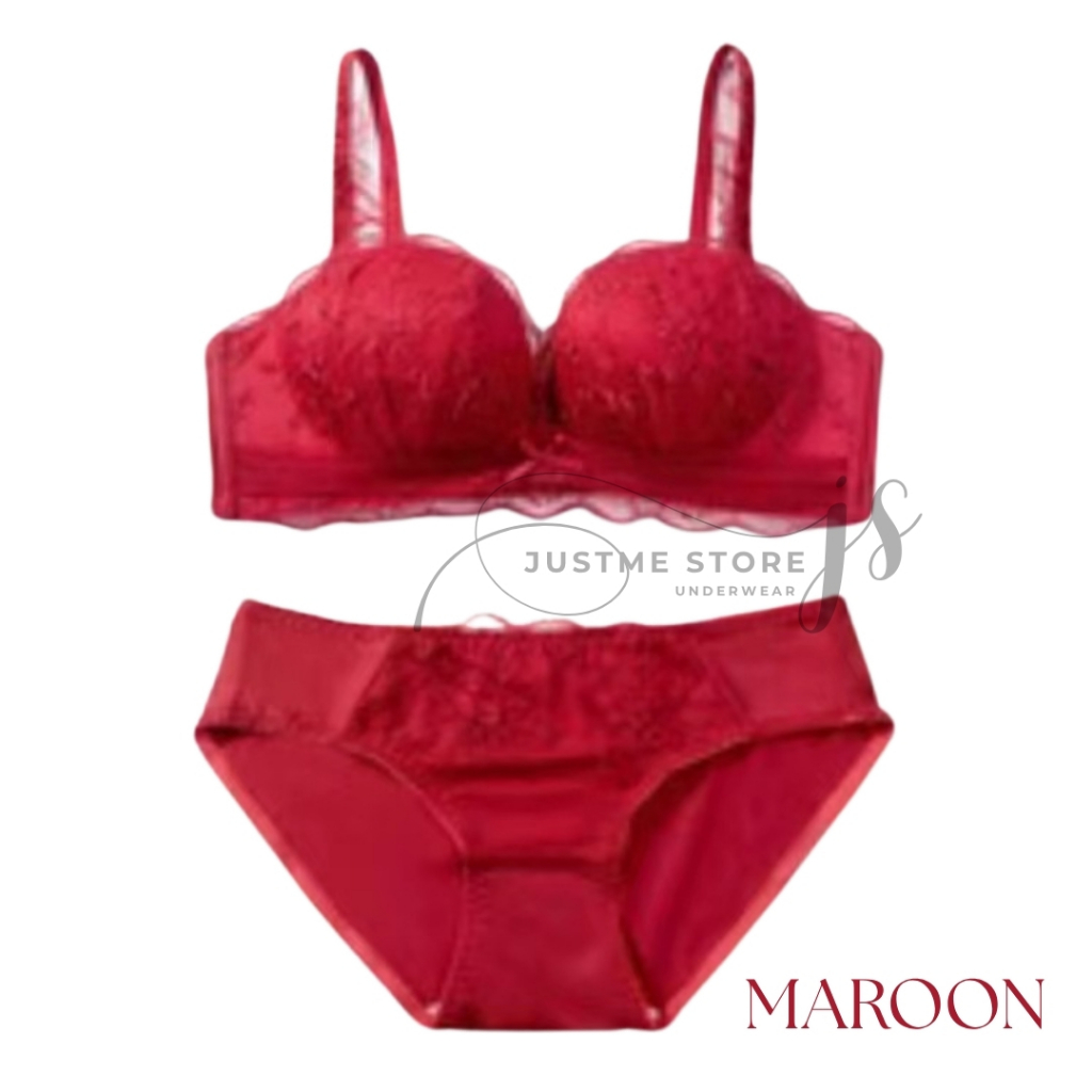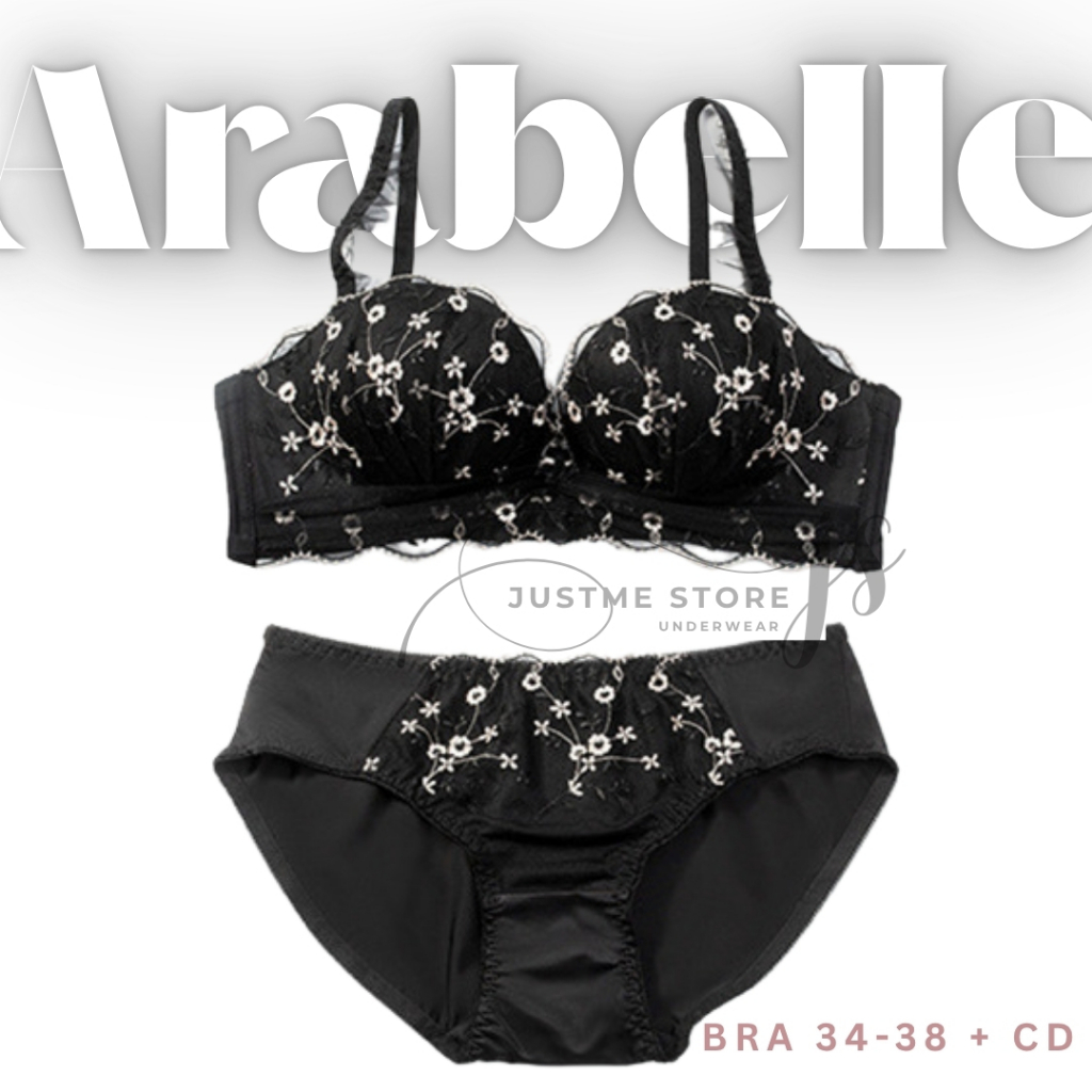 ARABELLE Bra Set ( BRA + CD ) Pakaian Dalam Wanita Renda Tanpa Kawat Busa Tipis Push Up Size 34-38 Cup AB JUSTME