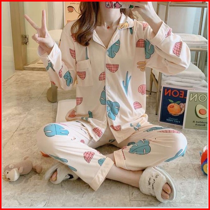 Lovera Baju Tidur Piyama Set Kemeja Pp Lengan Panjang Celana Panjang Premium Part 2