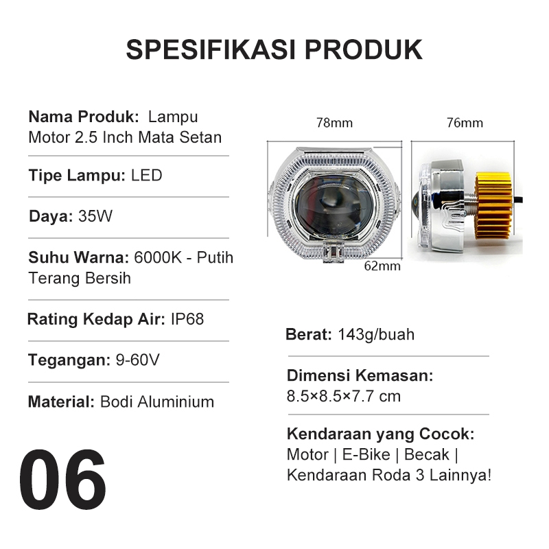 Tech Moto 2 5 Inch LED 35W Waterproof IP68 Cut Off Mini 2 5 Inch D2 D3 Jauh Dekat 35watt Waterproof Plus Devil Lampu Biled 2 5 Inch