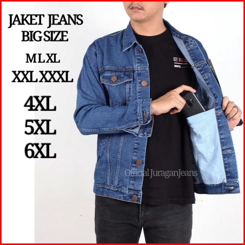 Ready Jaket Jeans Denim Jumbo Big Size M L Xl Xxl Xxxl 4xl 5xl 6xl Pria Cowok Premium Terbaru 2023 Warna Biru Muda Biobl