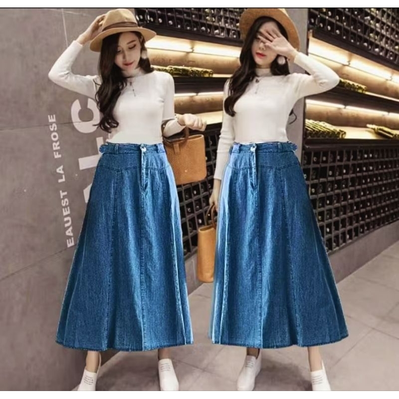 Rok Jeans Panjang Rok Jeans A-line Mayung Korean Wanita Denim Premium Terbaru