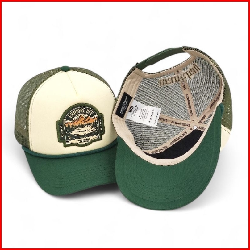 Wankbay Trucker Hat Plastisol Explore Life White Green
