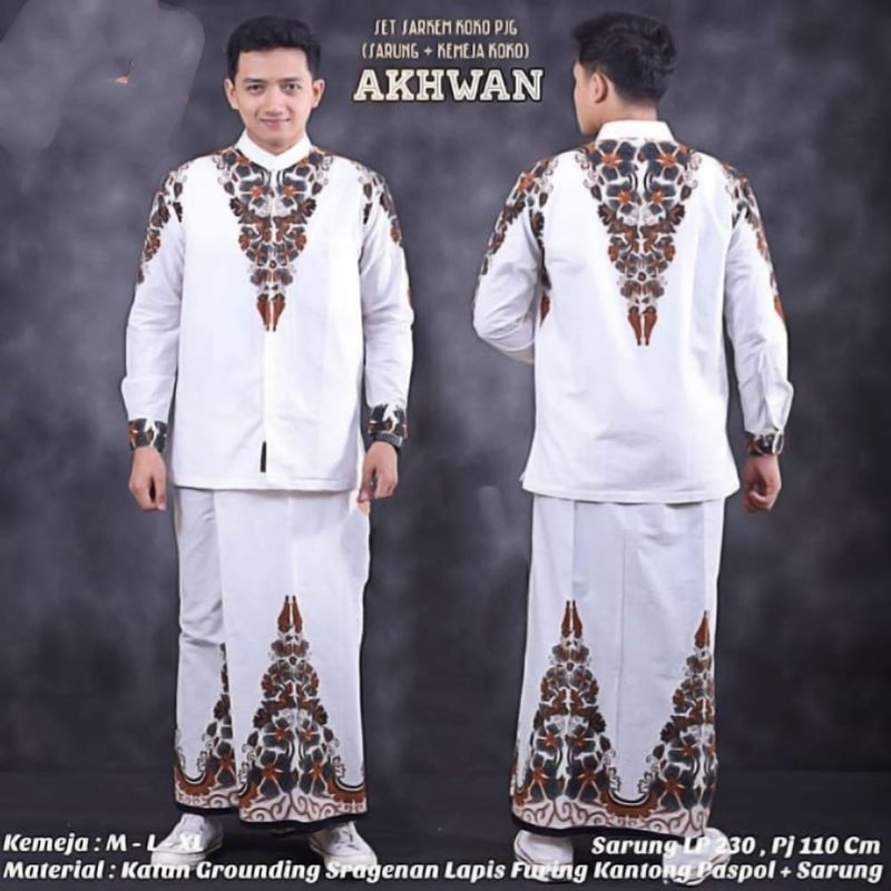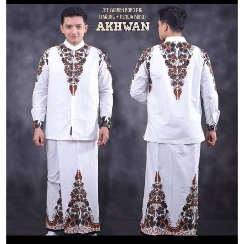 akhwan putih pusat grosir ecer Batik solo terlengkap setelan Koko sarung batik premium/setelan baju muslim pria| Koko ba