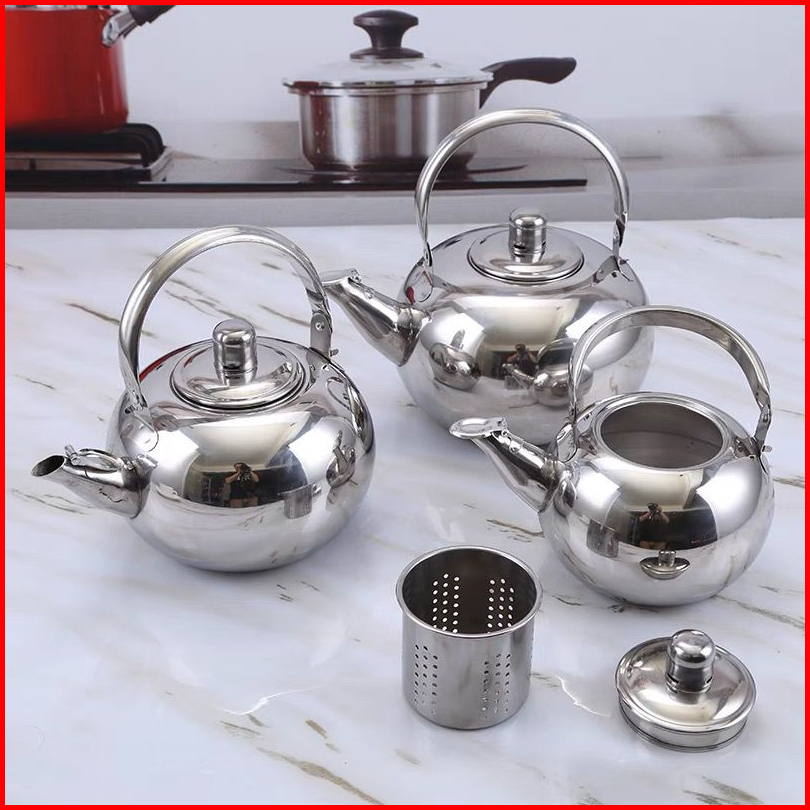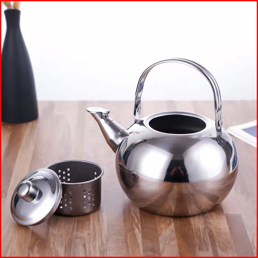 Indoline - Teko Bulat Aladin Stainless Steel - Teko Air Dengan Saringan Teh Kopi - Teko Teapot Saji Serbaguna