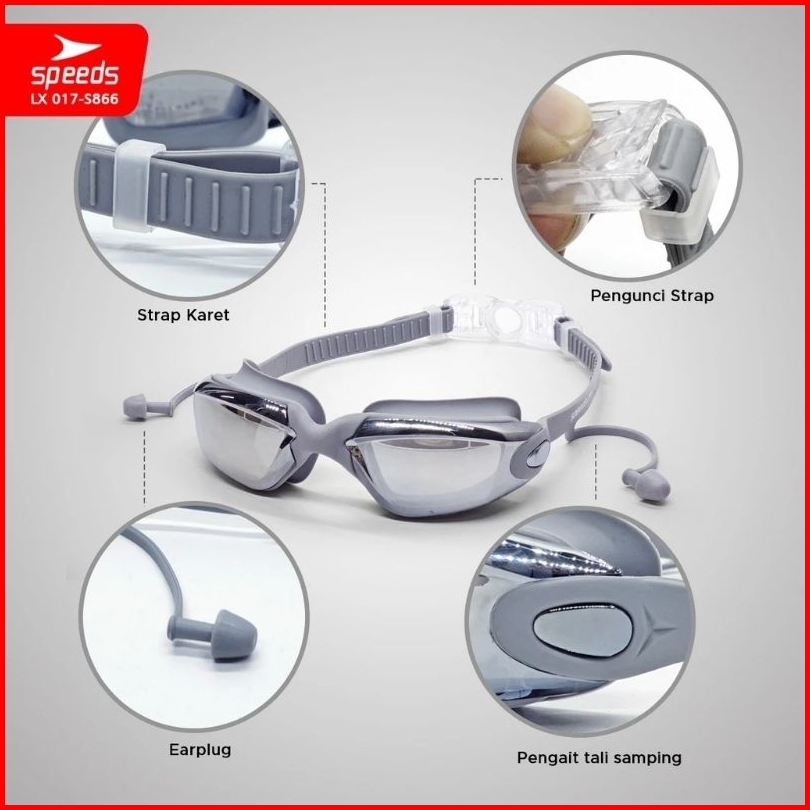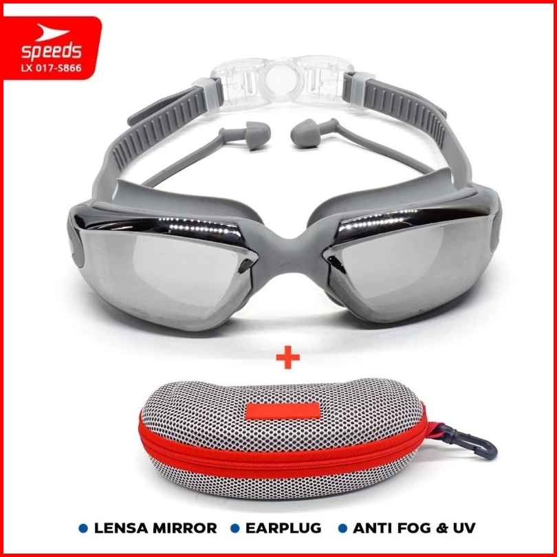 Speeds Original Kacamata Renang Dewasa Lensa Miror Penutup Telinga Anti Uv Free Box