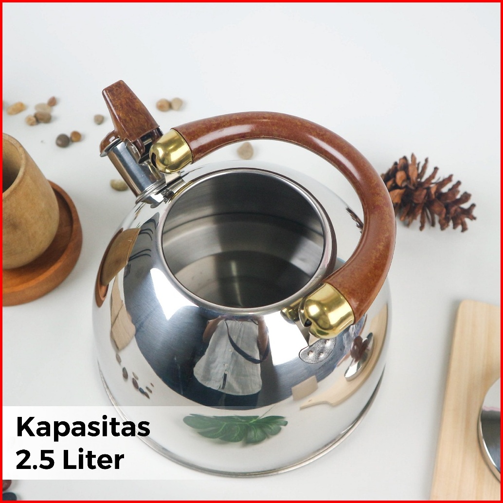 Promo Teko Bunyi Stainless 2 5 Liter Teko Siul Pemanas Air Stainless Kettle Siul Q2-8025 - Rd