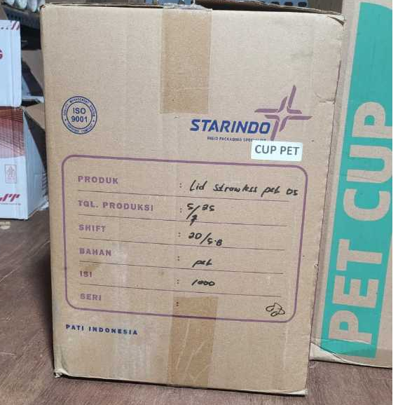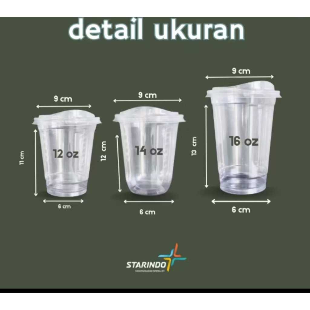 1 Dus Gelas Cup PET 12oz Datar Starindo l Tutup Cup Lid Strawless