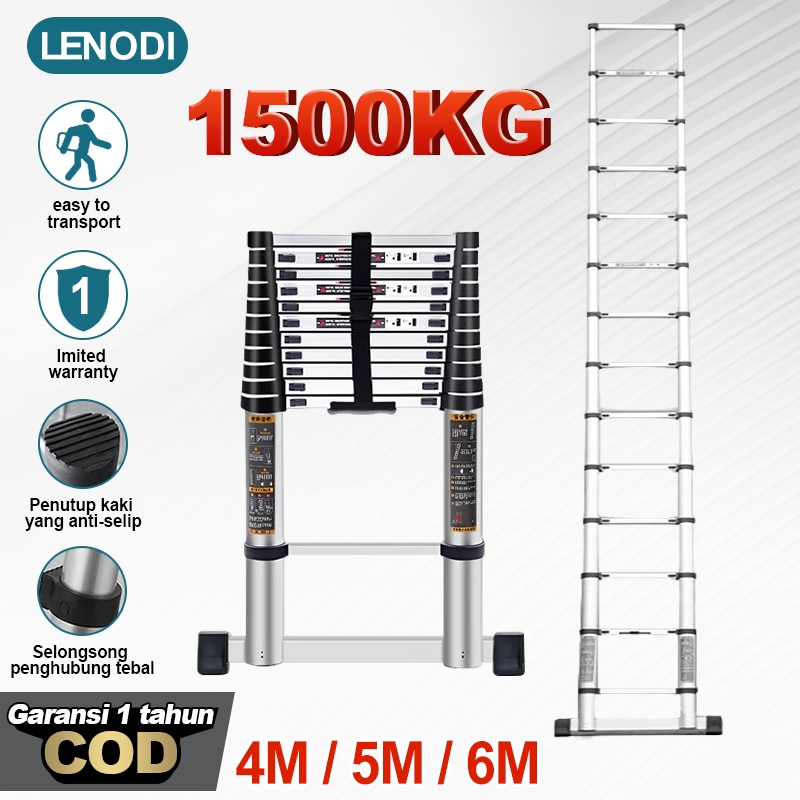 TANGGA TELESKOPIK TANGGA LIPAT ALUMINIUM LENODI Tangga Lipat Aluminium 5M / Telescopic Ladder 6 M /8 M