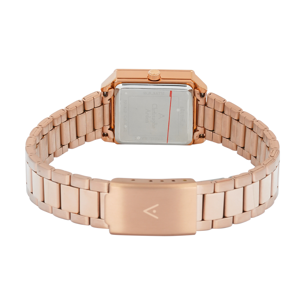 Jam Tangan Wanita Christophe Arden CA 2003 LDBRGBO Tank Brown Dial Rose Gold Stainless Steel Strap