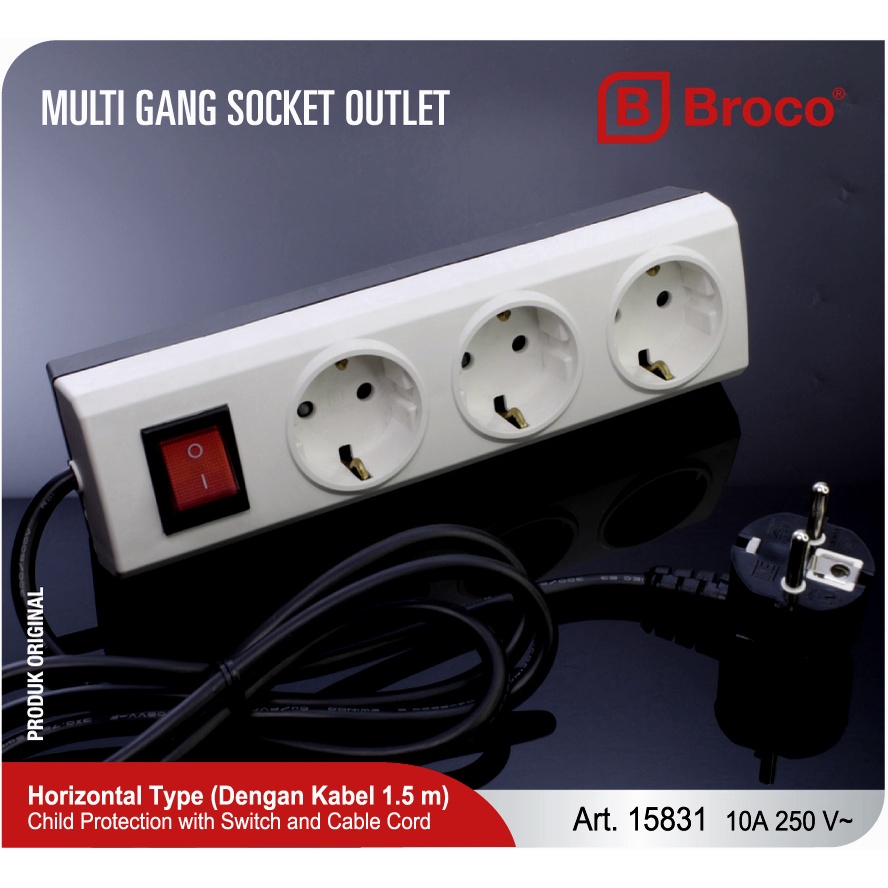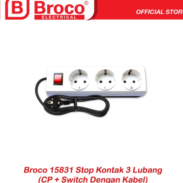 Stop Kontak Broco 3 Lubang Colokan Terminal Listrik + Kabel 1.5/3 Meter Steker Dinding Serabut Temabaga Eterna 50 100