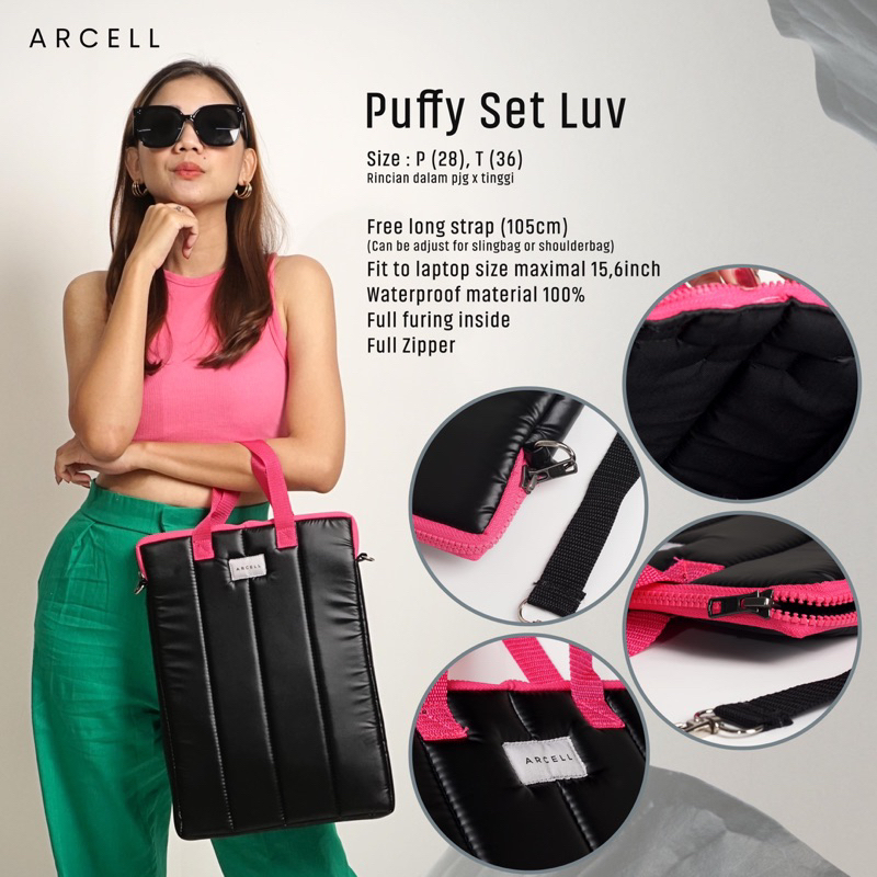ARCELL - PUFFY LAPTOP SET LUV l Tas Laptop 13-15,6inc I Tas Laptop Jinjing FREE TALPAN