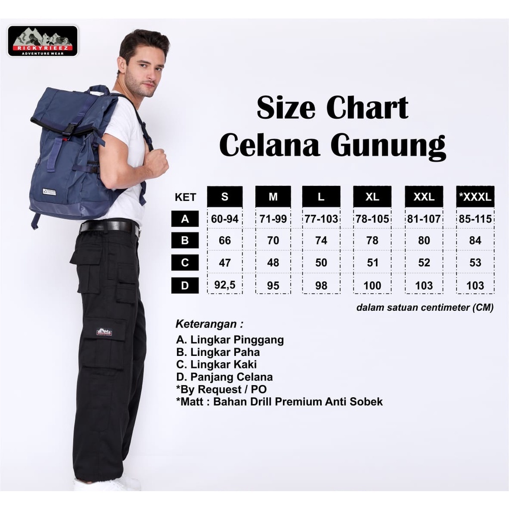 Celana Gunung Panjang Cargo Hiking Outdoor Pria Wanita Bahan Drill Premium Adem Tebal Kuat & Awet