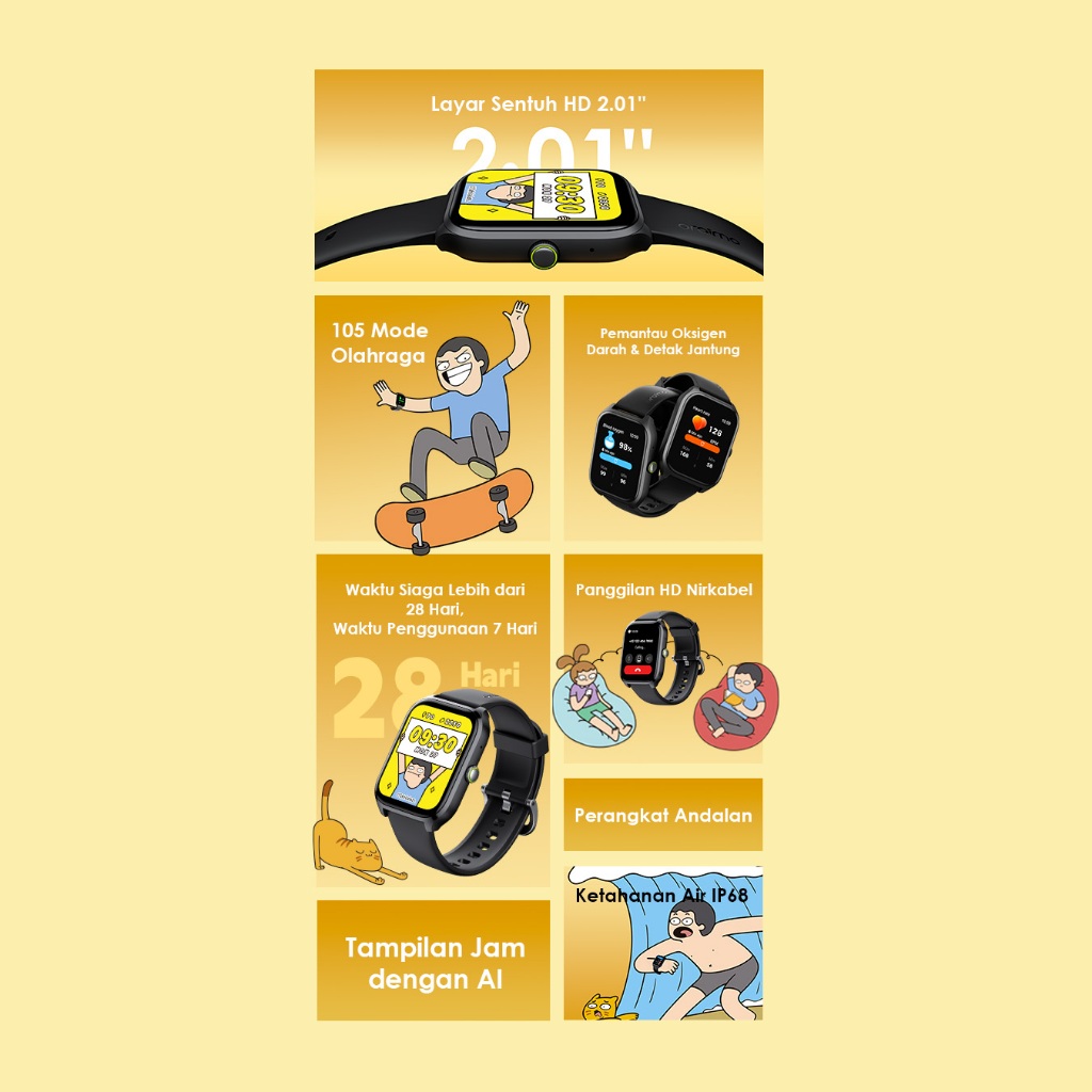 oraimo Watch 5 Max Smartwatch OSW-804 Jam Tangan Pintar 2.01'' Layar Besar Nirkabel Bluetooth Panggilan Tahan Lama