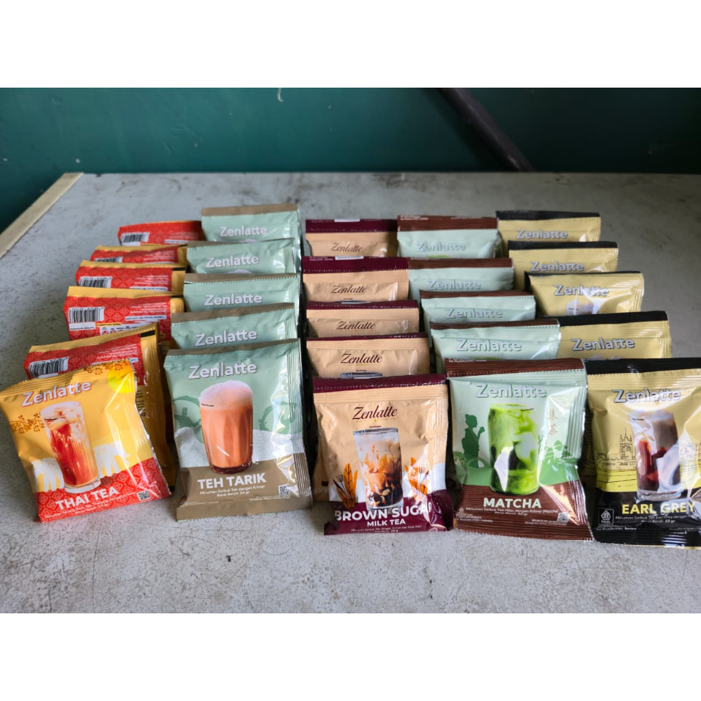 zenlatte 24gr 1 renceng isi 10pcs minuman serbuk premium rasa matcha/teh tarik/thai tea/earl grey/brown sugar