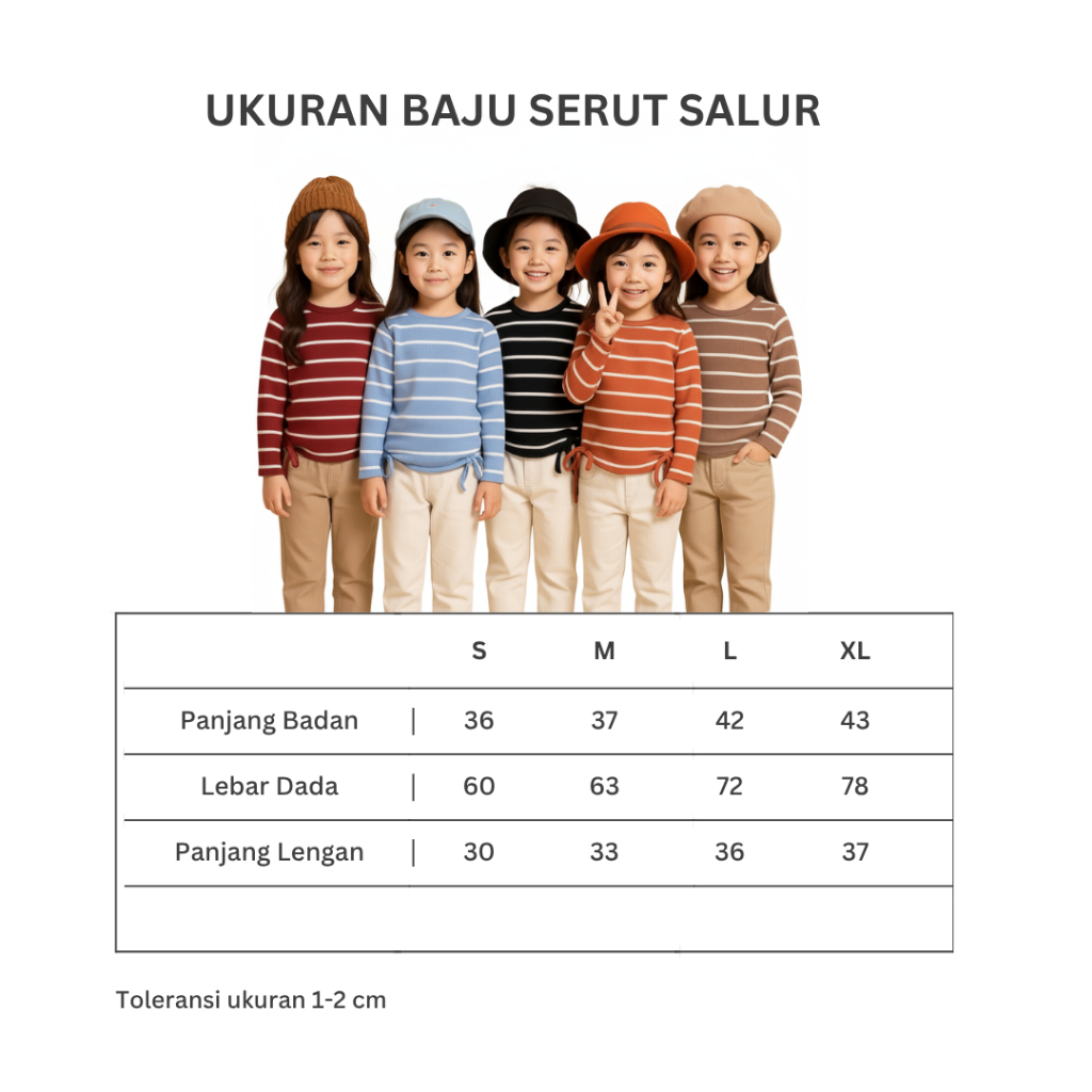 Baju Salur Anak Atasan Anak Perempuan Usia 1-12 Tahun Model Serut Salur – Bahan Rip Premium Lembut Dan Nyaman