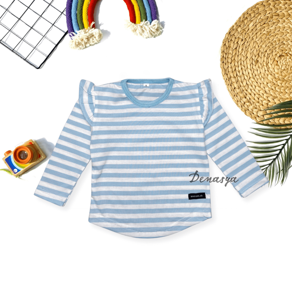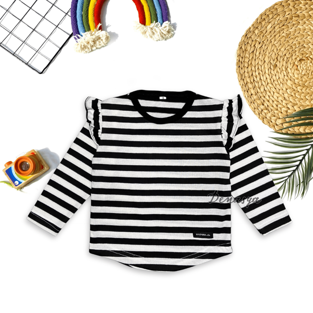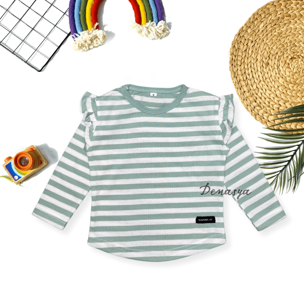 Baju Salur Anak KAOS RUFFLE ANAK KEKINIAN / KAOS STRIP ANAK KEKINIAN / ATASAN BELANG PANJANG REMPEL USIA 1-12 TAHUN