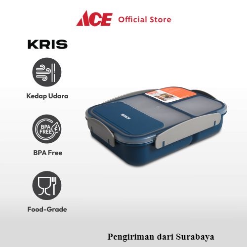 Kris 1.7 Ltr Kotak Makan Dengan Sendok & Garpu - Biru Muda Lunch Box Food Grade Food Box Dengan Clip Kotak Bekal Makan B