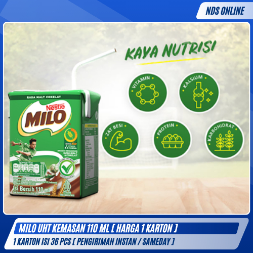 MILO UHT 110ml 1 Karton Isi 36 Pcs | Susu Coklat Energi Siap Minum | Pengiriman Instan /