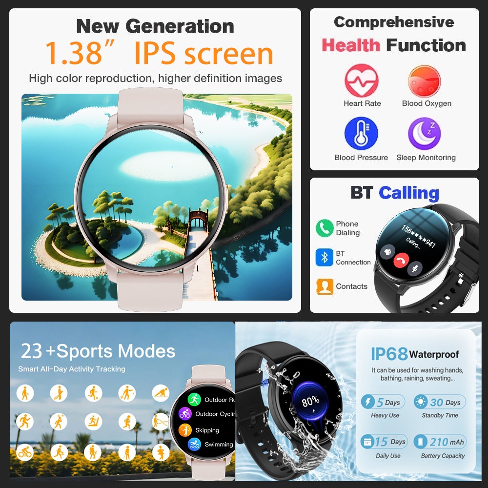TIMEVER GTR S Jam Tangan Smartwatch Pria Running Pace IPS Screen Metal Smart Watch Heart&Rate Monitoring Smartwatch