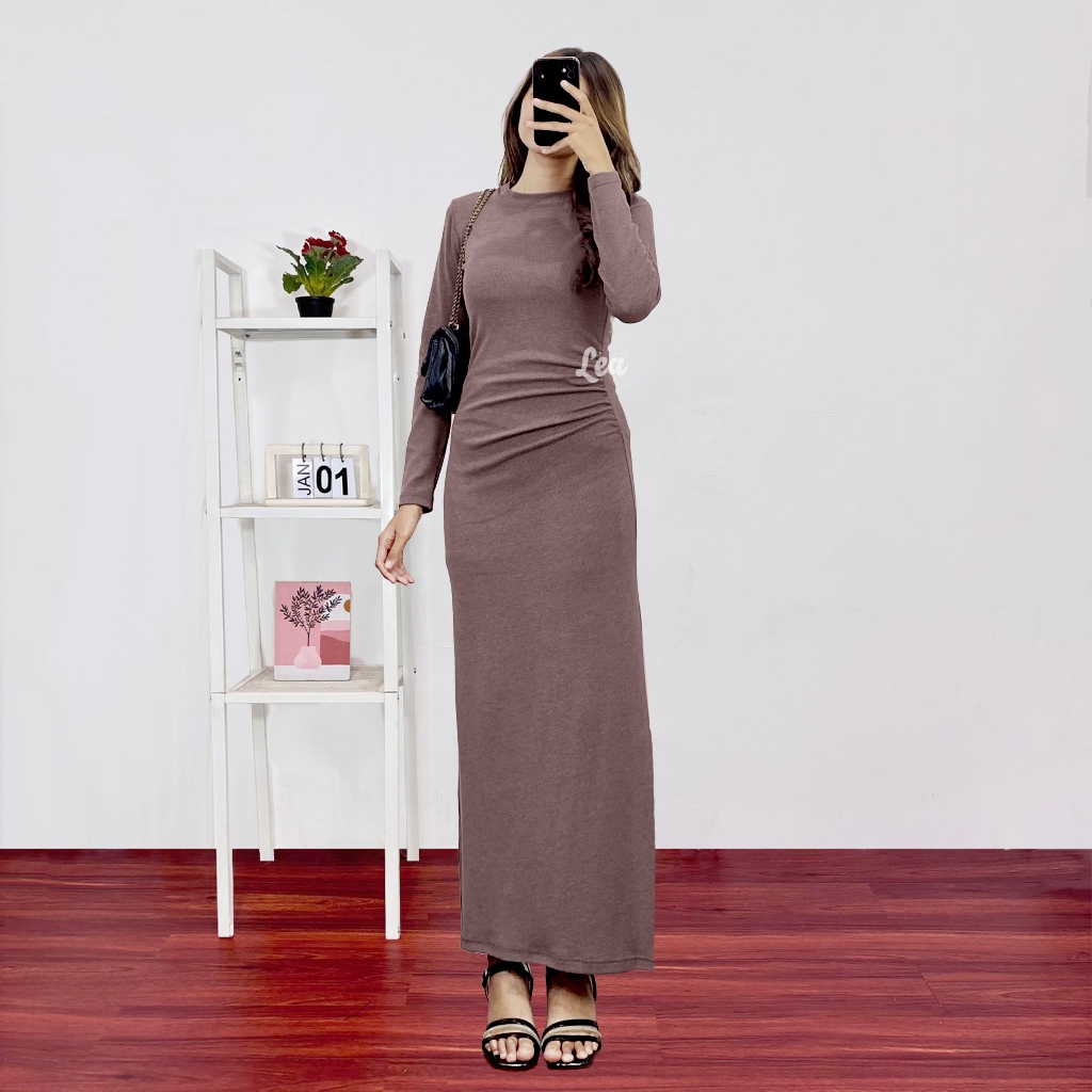 Dress Wanita Korea Panjang Knit Dress Kerut Pinggul