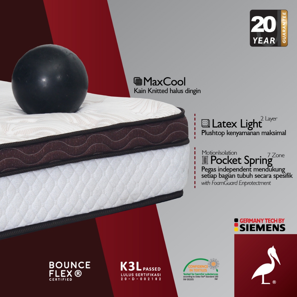 Pelican Kasur Pocket Spring Latex Max Tebal 25 cm 20 Tahun Uk 90 120 160 180 200