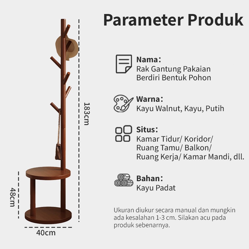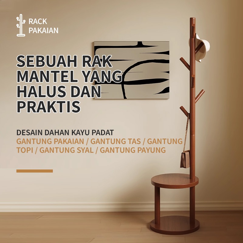 Stand Hanger Rak Gantungan Baju Kayu Multifungsi Hanger Tunggal untuk Rak untuk Baju, Topi, dan Tas, Gantungan portable